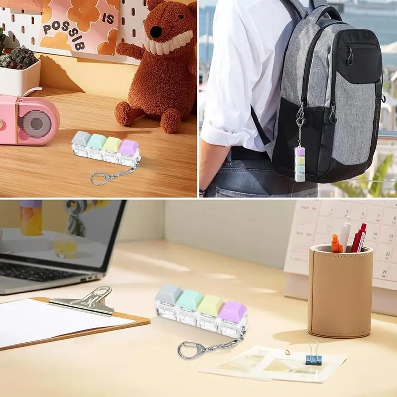 Portable Keyboard Switch Tester, 4 Switches with Carabiner, Stress Relief Fidget Toy for Adults, Fun Typing Experience for Kids